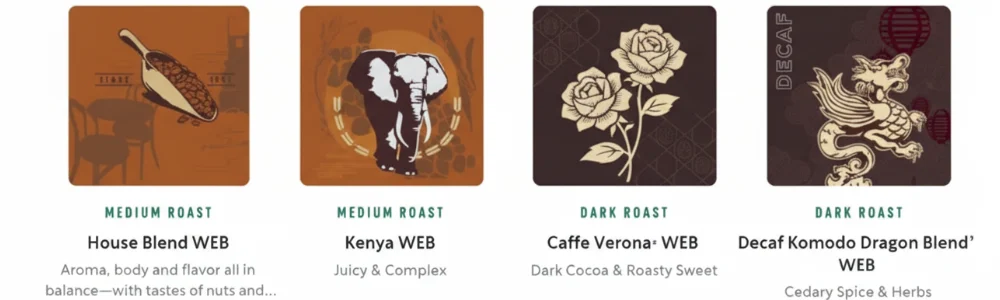 A common theme is the naming of coffee blends after well-known candies or sweet treats.